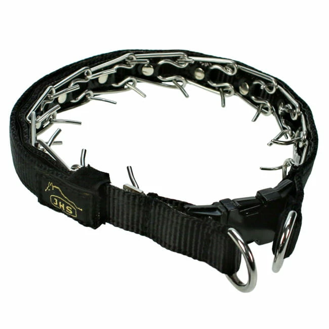 Dressurhalsband aus Edelstahl mit Klickverschluss und festintegrierter Nylon-Verkleidung