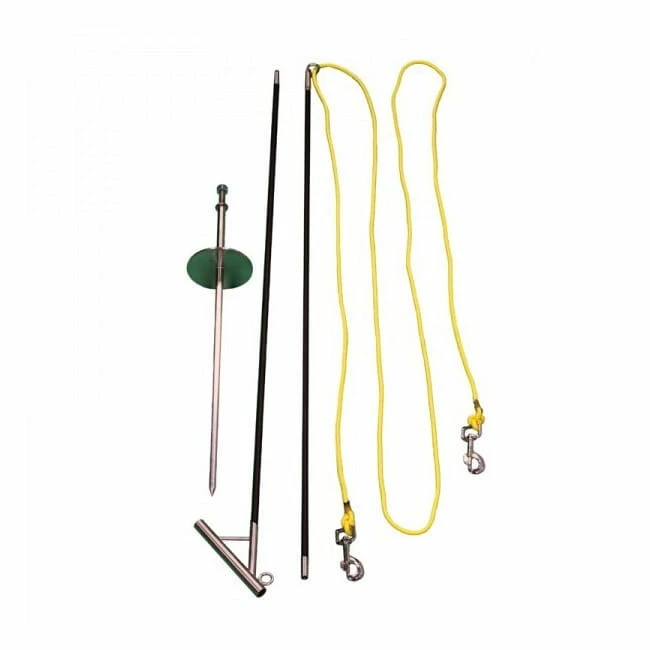 DarĂŒber kann der Hund an einem Geschirr angeleint werden. Der Teller am ErdspieĂ ist frei drehbar und sorgt damit fĂŒr uneingeschrĂ€nkte Bewegungsfreiheit. Es droht keine Stolpergefahr.