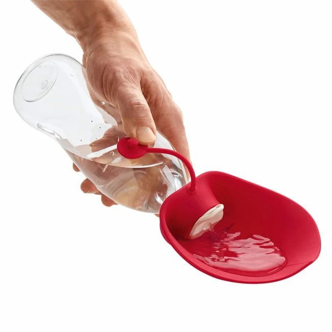 Kommt Durst auf, kann die SchĂŒttvorrichtung auslebensmittelgeeignetem Silikon einfach ausgeklappt und als Napf genutztwerden.