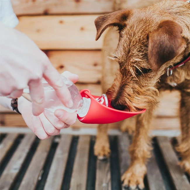 Mit der Outdoor Trinkflasche mitSilikonnapf kann die Wasserversorgung auch ohne sperrigen Napfstattfinden.
