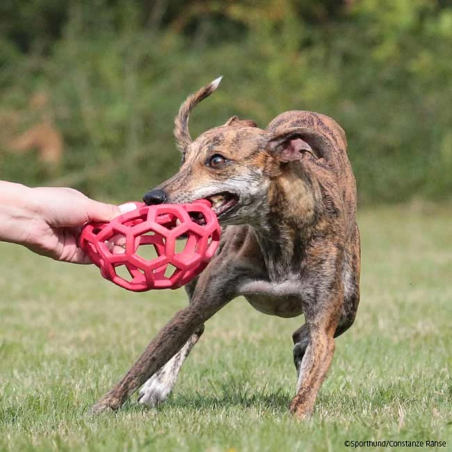 Achte darauf, das fĂŒr deinen Hund passende Spielzeug auszuwĂ€hlen. Hat es die richtige GröĂe und StabilitĂ€t? Auch das robusteste Spielzeug kann bei intensiver Beanspruchung kaputt gehen. Teile könnten vom Hund verschluckt werden.