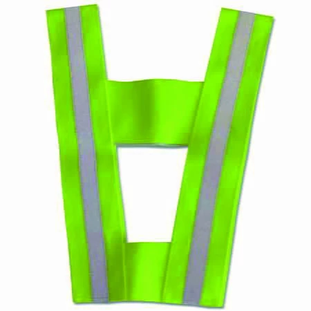 Leuchtgelbes Trapez mit zwei durchgehenden, silberreflektierenden Streifen. Einfach in der Handhabung, wird es ĂŒber den Kopf geworfen.