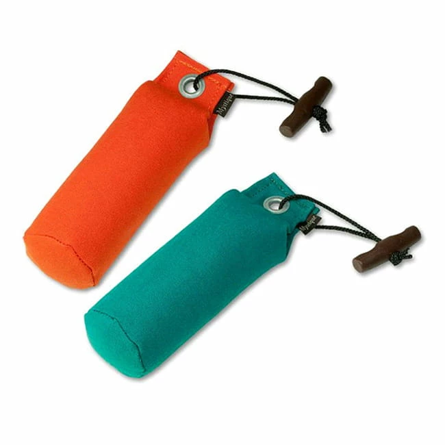 Am Dummy ist mit einer robusten Kordel ein Wurfknebel befestigt. Seine abgerundete Form ermöglicht ein angenehmes Tragen und Halten.