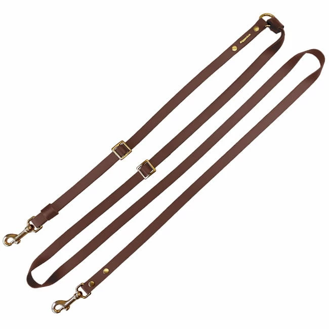 Die Niggeloh Biothane UmhĂ€ngeleine NOBLE braun ist aus einem mattem, geschmeidigem, original BioThaneÂź Material derâBETAâ Kategorie in geprĂ€gter Lederoptik mit hoher Griffigkeit gefertigt. Sie ist doppelt verstellbar bei UmhĂ€ngeteil und FĂŒhrleine. Der Karabiner und die anderen Bauelemente sind aus Messing.