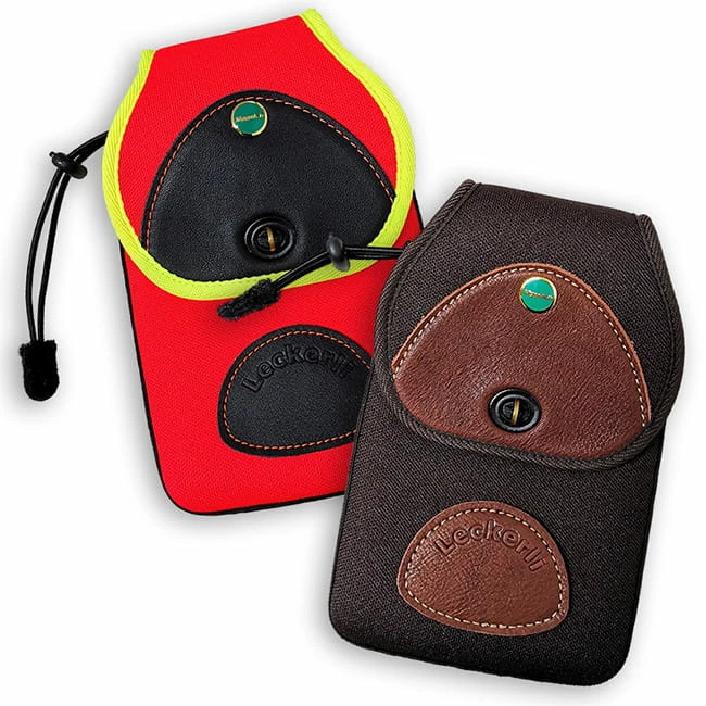 Die Niggeloh âSnack Bagâ bestehend aus Neopren und Leder ist eine Leckerlitasche mit separatem Beutel, in den Futter gefĂŒllt werden kann.