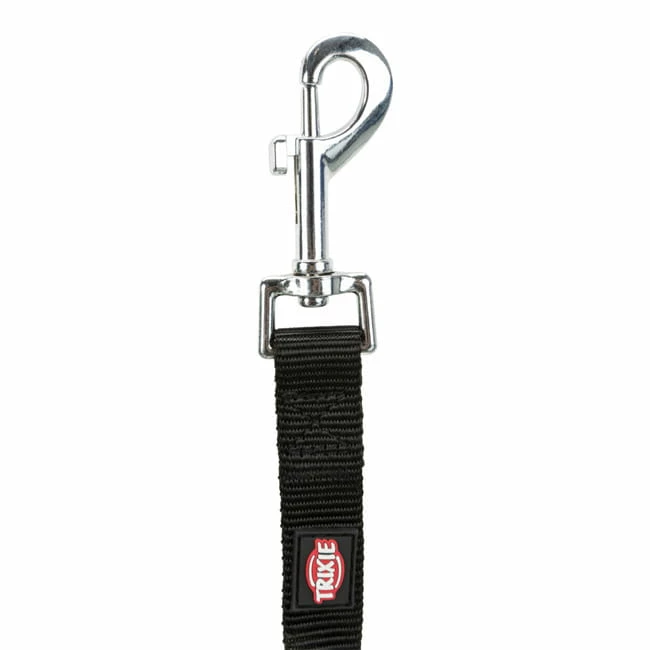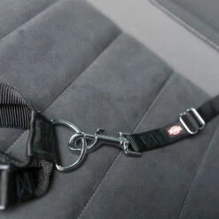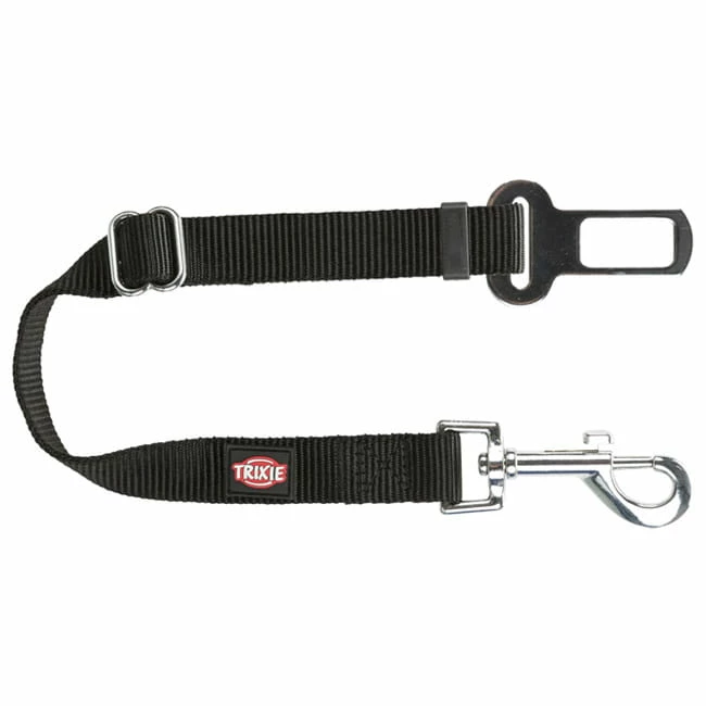 Der schwarze Anschnallgurt mit Metallschieber von Trixie ist stufenlos verstellbar.