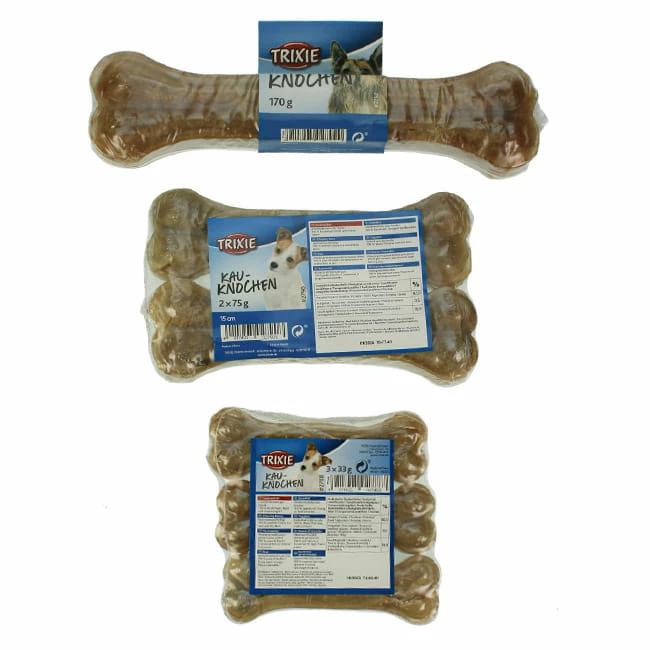 100 % Rinderhautknochen von der Firma Trixie in verschiedenen GröĂen.