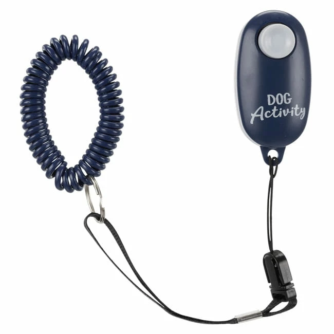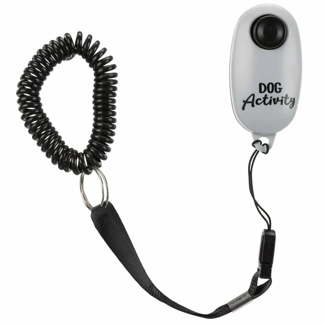 Besonders leiser Clicker fĂŒr empfindliche Hunde. Mit Spiralband fĂŒrs Handgelenk.