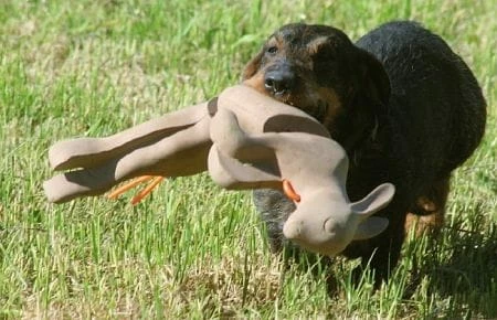 Der Hund lernt dadurch sehr schnell, dass es angenehmer ist, das Wild mittig zu fassen.Â